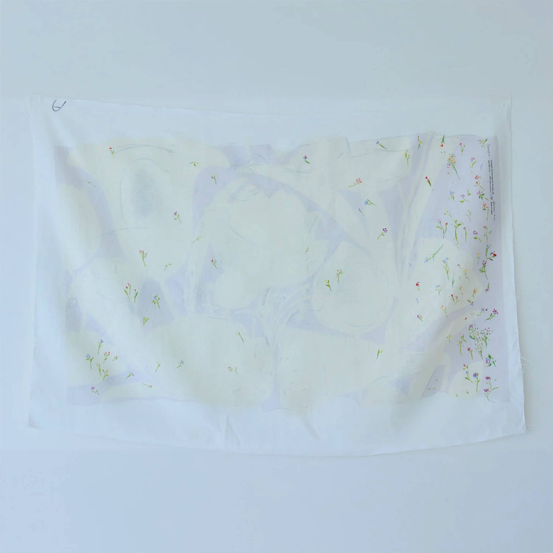 Das Muster wirkt ruhig und harmonisch, inspiriert von Licht, Luft und leisen Momenten. Ein großes Muster im Hintergrund steht im Kontrast zu zarten, kleinen Blumen.